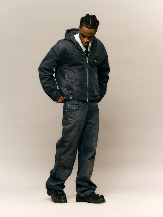 Horati Wax Coated Jeans | Stained Blue