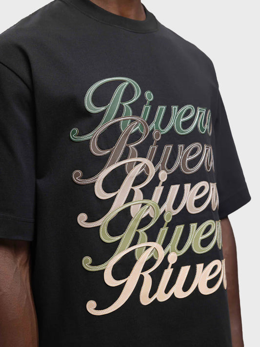 Rivero Signature Leather Patched T-Shirt | Black