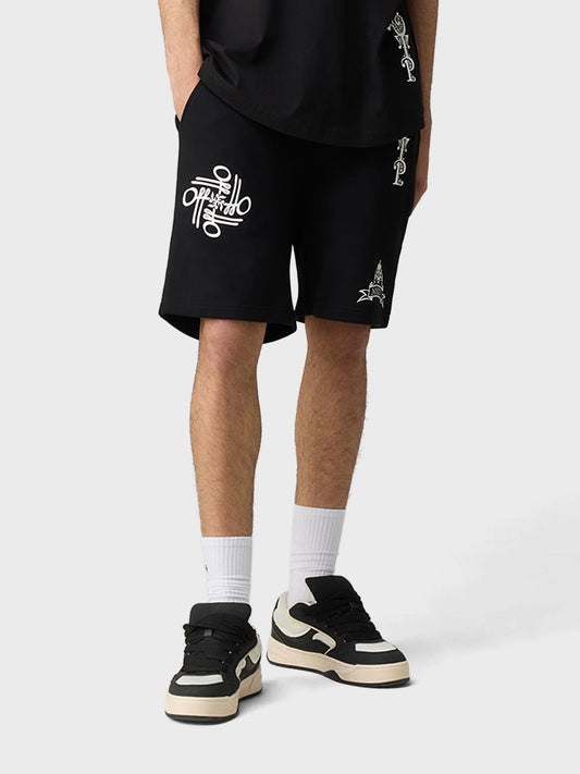 Off The Pitch Fraktur Denim Shorts | Stone Wash