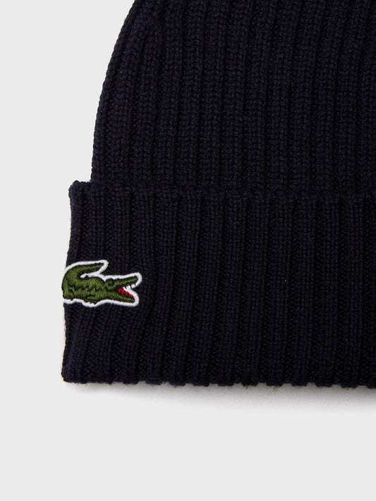 Lacoste Ribbed Wool Beanie | Black