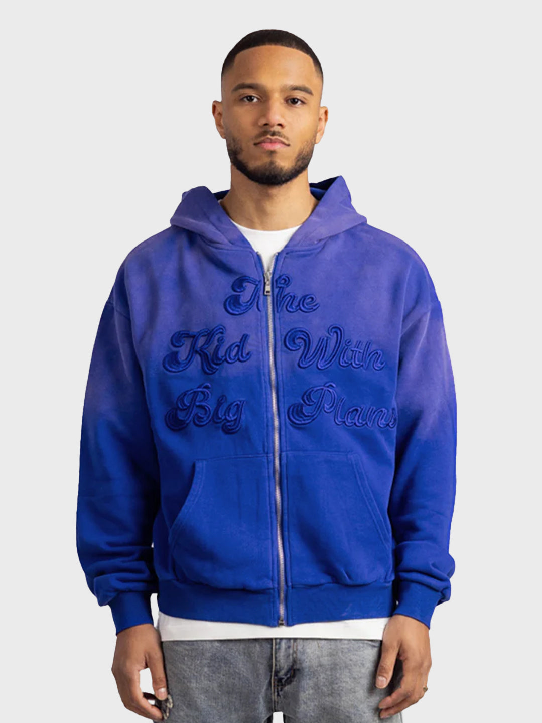 Big plans? Then you need a hoodie that goes as hard as you do. The Rivero Big Plans Zip Hoodie in Blue brings comfort and style together in one thick essential. The oversized fit, deep hood and embroidered graphic make this Rivero hoodie perfect for every day. Wear it open over a tee or zip it up for that cozy vibe.